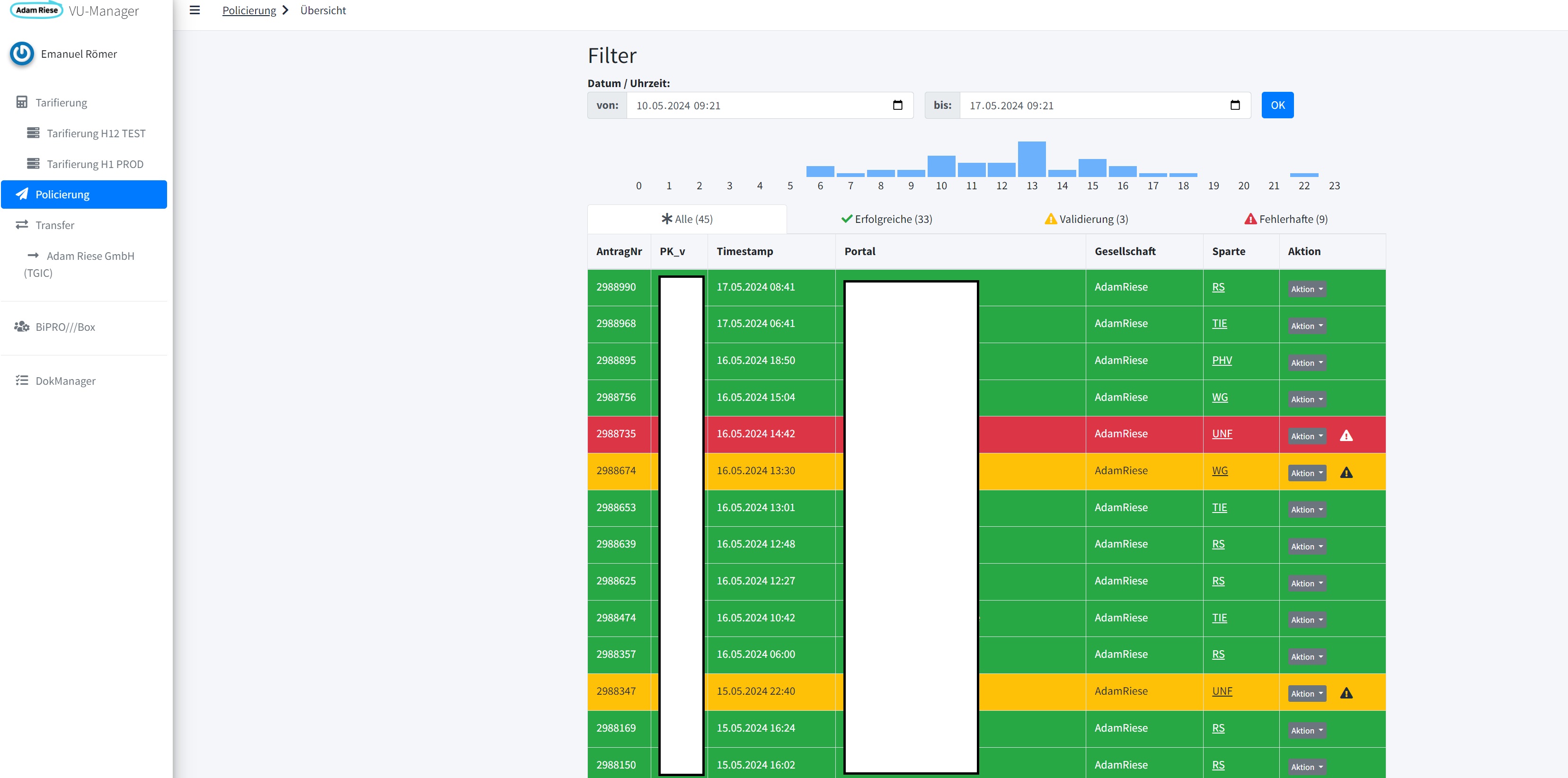 Mit dem VU///Manager von Mr-Money können Sie nur gewinnen. Denn durch die Möglichkeit eines unmittelbar dargestellten Überblicks sämtlicher Berechnungen zu den von Ihnen angebotenen Tarifen können Sie schnell und einfach prüfen, ob alles so läuft, wie es soll. Sie erhalten einen permanenten Live-View zu den Log-Files und können gestellte Anträge als PDF abrufen. Und im Rahmen des Tarifierungs- und Policierungsprozesses werden Sie neben all dem in die Lage versetzt, Ihre Angebote in einer Test- sowie in einer Produktivumgebung auszuprobieren. Mehr Sicherheit und Transparenz geht kaum.